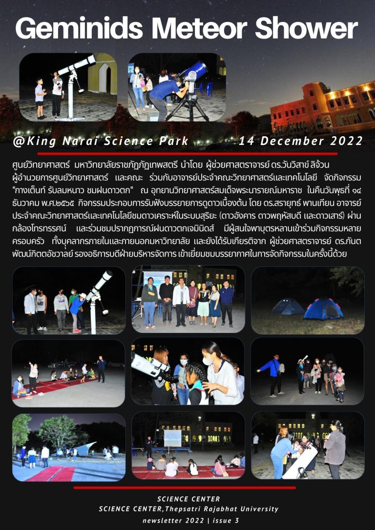 กิจกรรมดาราศาสตร์ ชมฝนดาวตกเจมินิดส์ 14 ธ.ค. 2565 Posted on 17 ธันวาคม 20224 พฤศจิกายน 2024 By Scicenter@@TRU ไม่มีความเห็น บน กิจกรรมดาราศาสตร์ ชมฝนดาวตกเจมินิดส์ 14 ธ.ค. 2565 ไม่มีหมวดหมู่